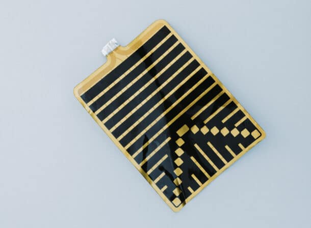 Ultrathin and lightweight heating film for integration between battery cells, particularly suitable for pouch cells.
